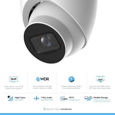 Advanced H.265 compression technology lets you save on storage space which allows for longer recording times. H.265 technology compresses your video without sacrificing any of the UltraHD video quality.
