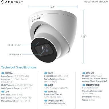 Record in Widescreen, Quick Access QR Code Remote Viewing on iPhone, iPad, and Android (w/ included Amcrest View app)